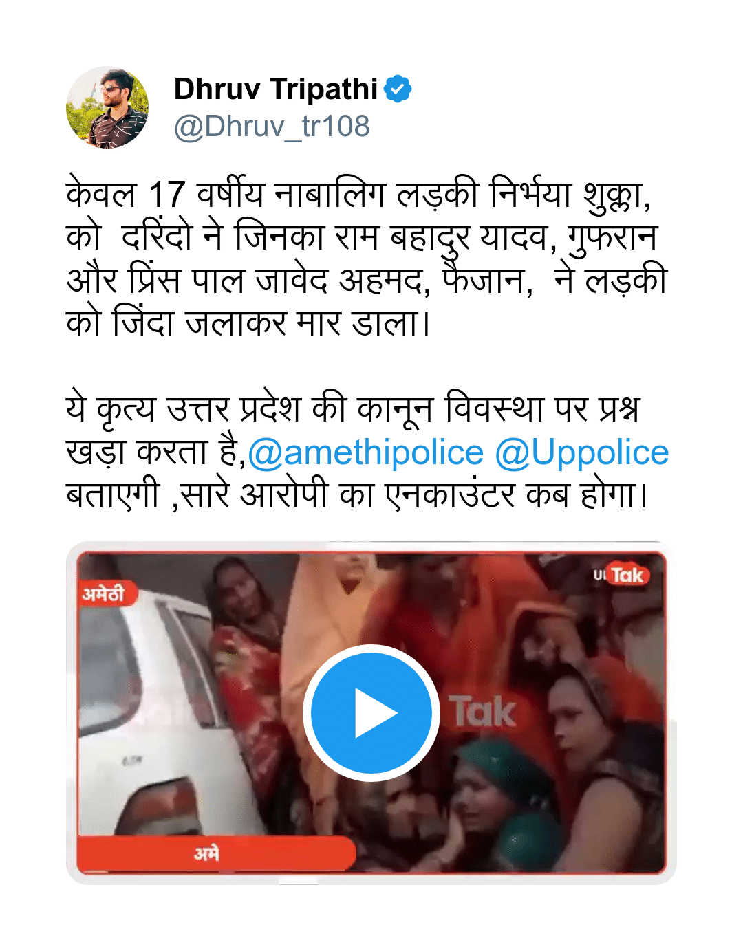 Gufran and his Muslim friends set Ablaze a Murder a Hindu minor girl Nirbhaya Shukla.