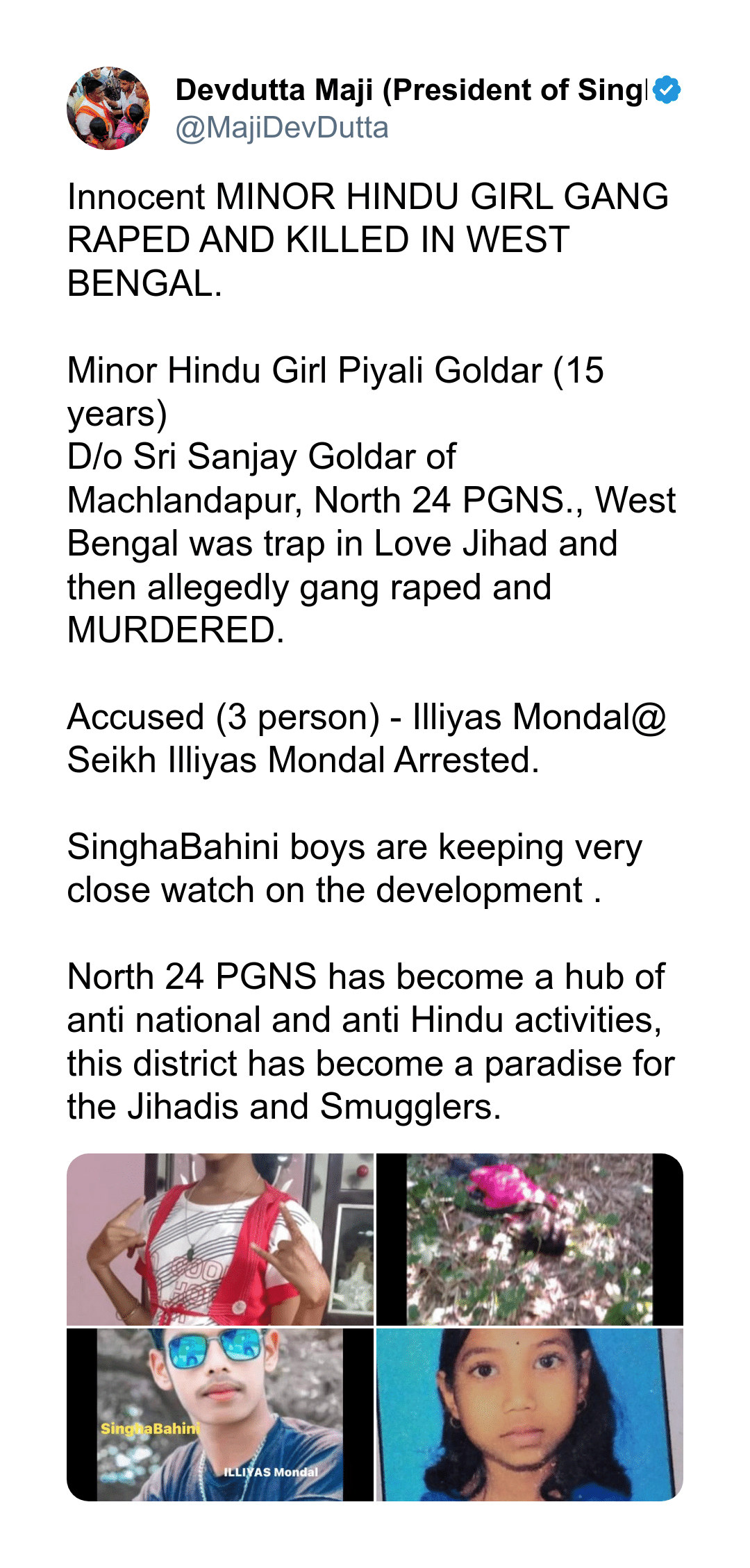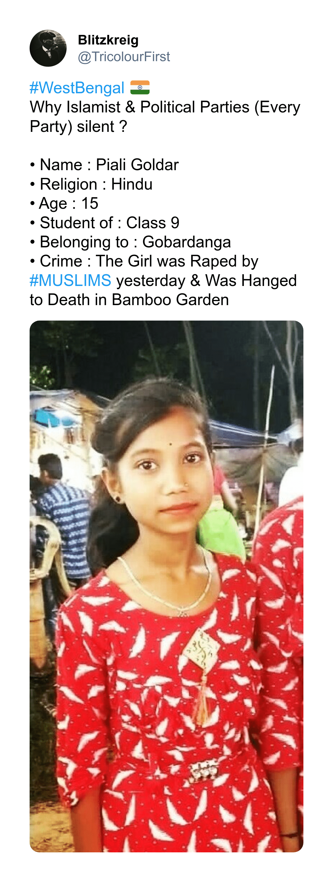 Iliyas Brutally Rape and Murder minor Hindu girl Piyali Goldar.