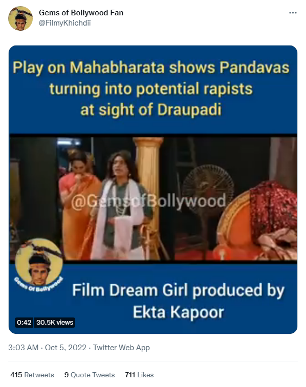 as potential rapists at the sight of Draupadi in a play on Mahabharata from the movie Dream Girl