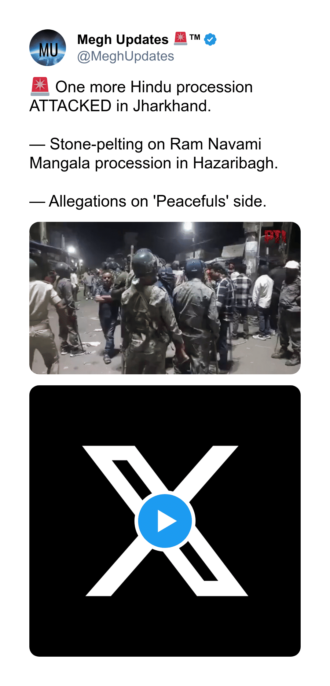stones on Hindus at the Mangala procession for Ram Navami.