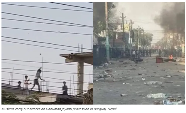 Hindu devotees participating in Hanuman Jayanti Shobha Yatra.