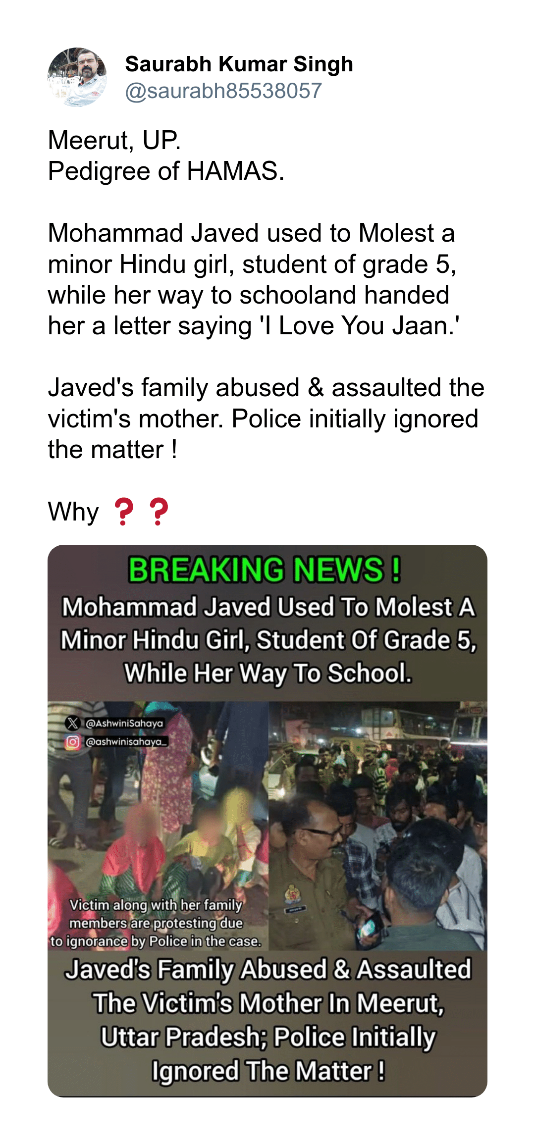 Javed Molests a Hindu minor girl, Javed's family Abuse and Assault girl's mother for complaining.