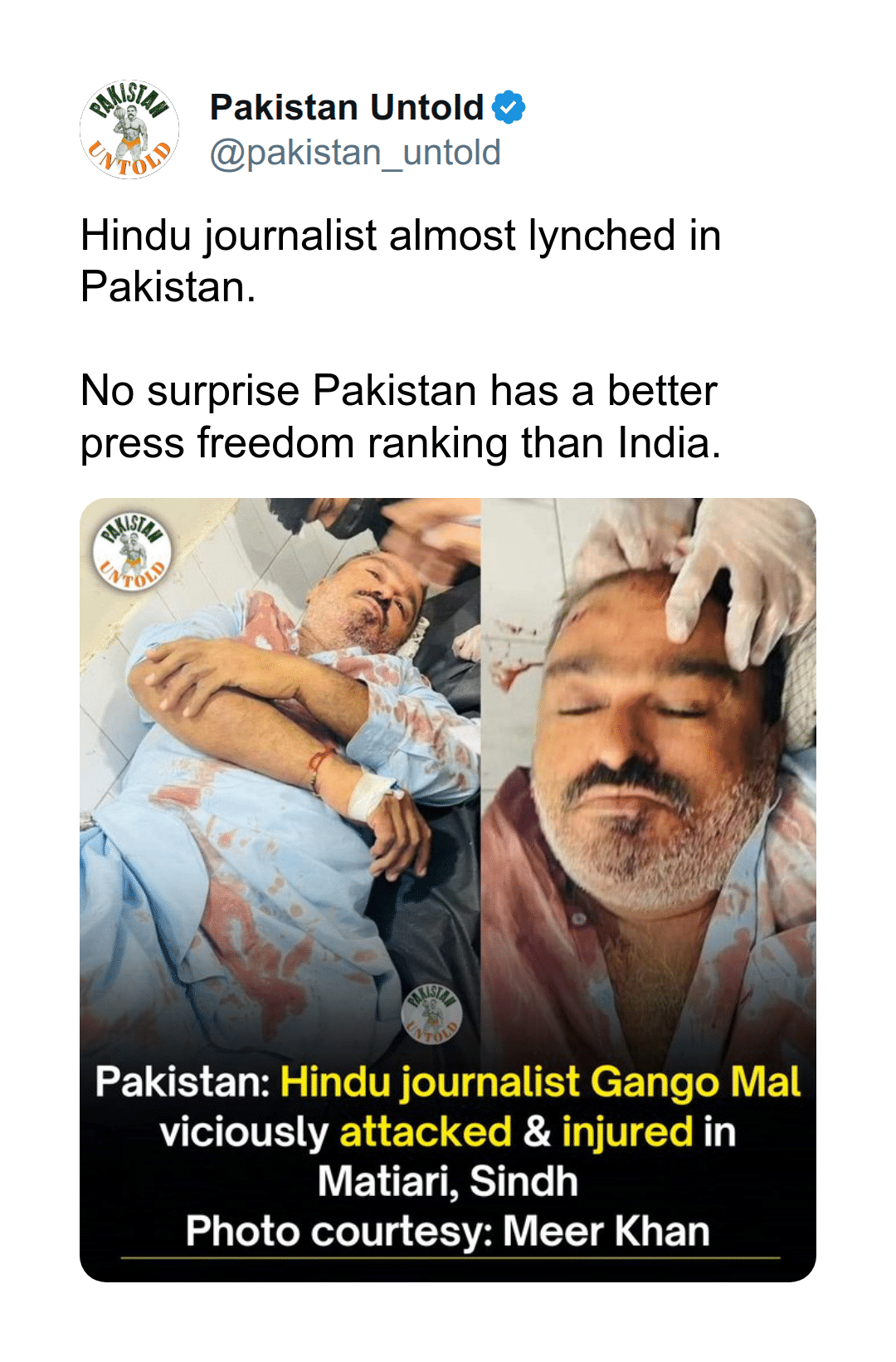 Hindu Journalist Gango mal attacked injured brutally by Muslims in Matiary, Sindh by Pakistani Muslims