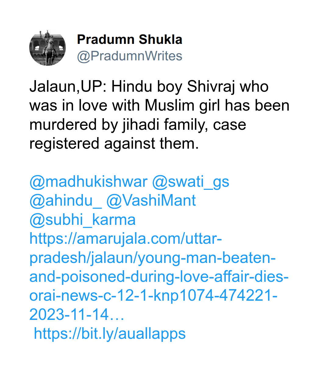 Muslim family Assaults and Kills Shivraj for having a Muslim girlfriend.