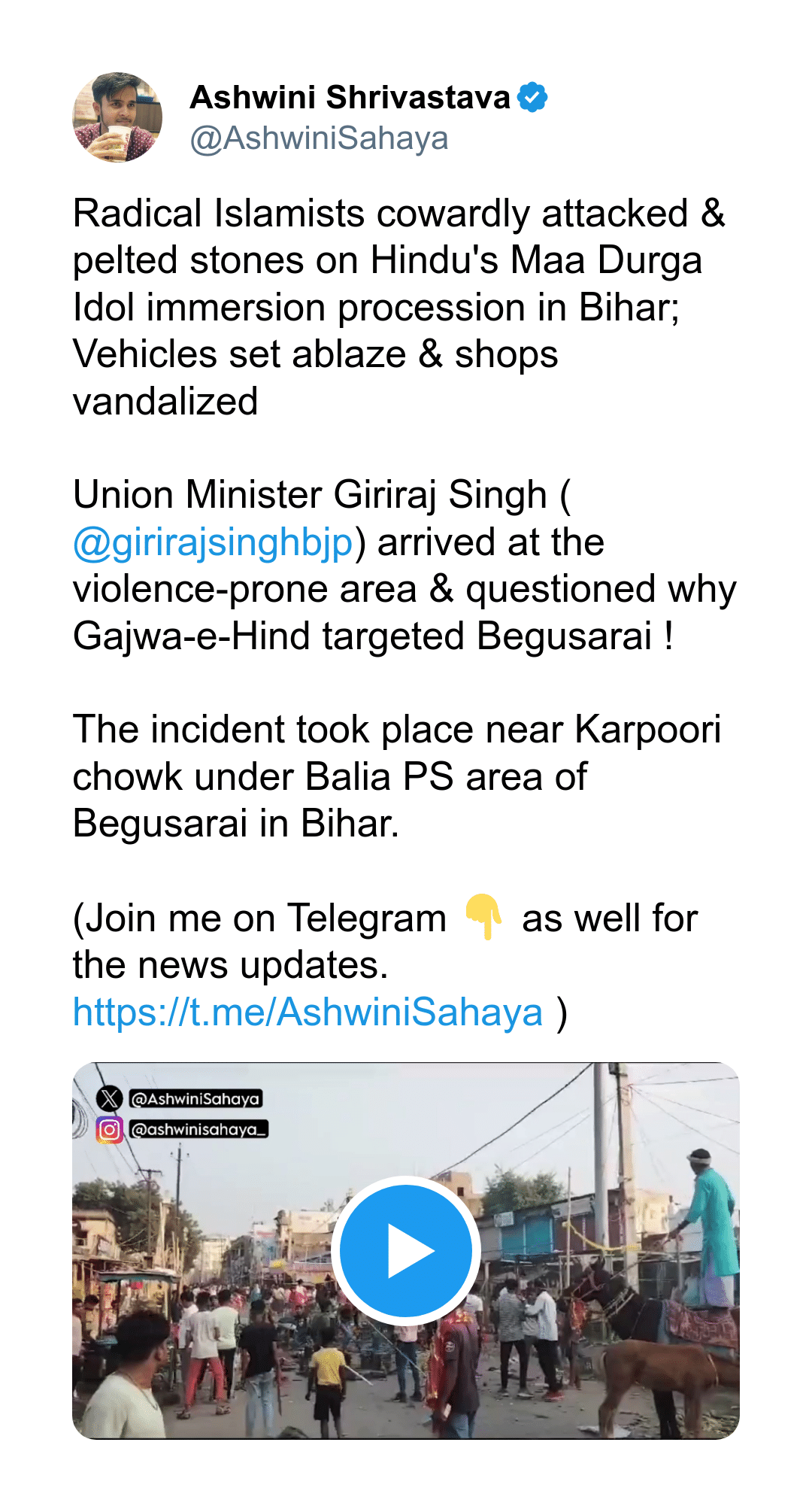 Muslim mob Pelt Stones, Ignite and Vandalize shops, Assault and Injure Hindu devotees during Durga Devi immersion procession.