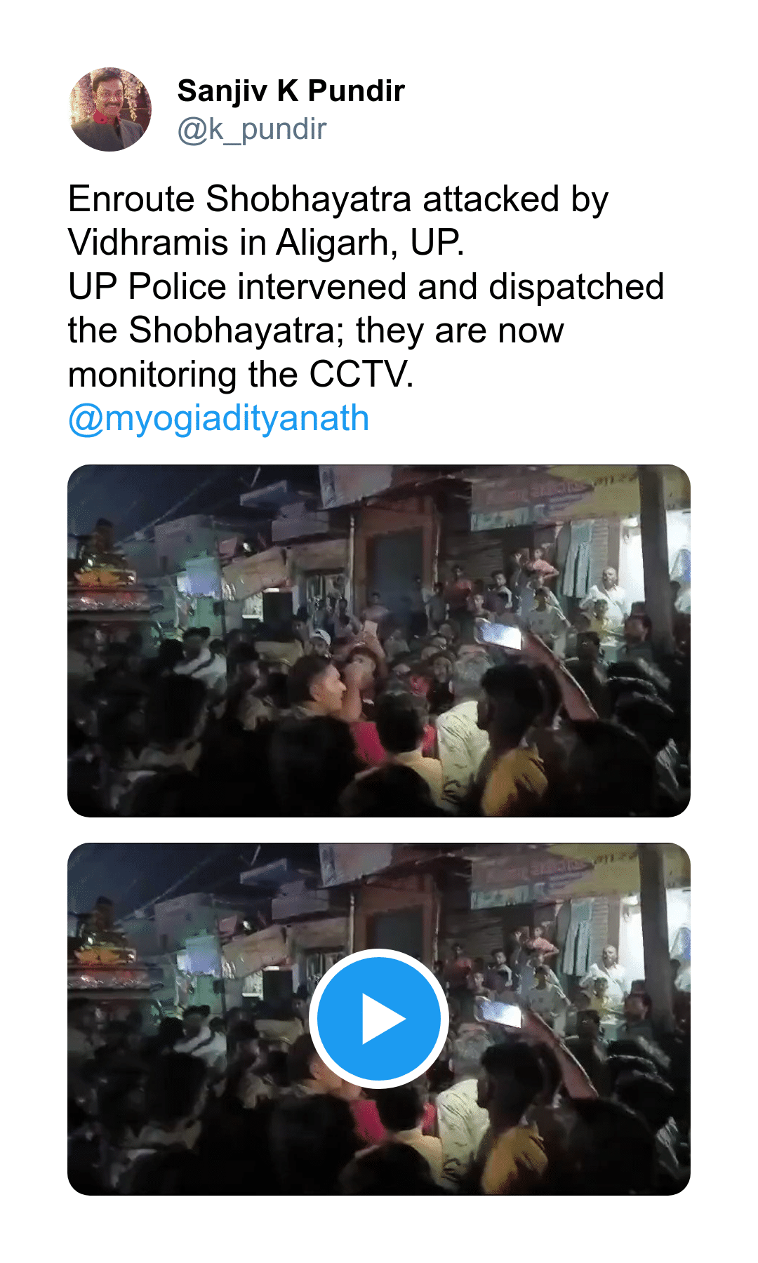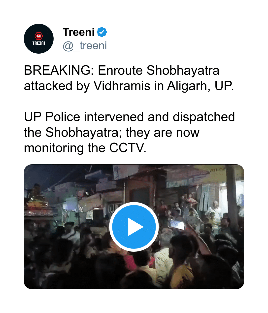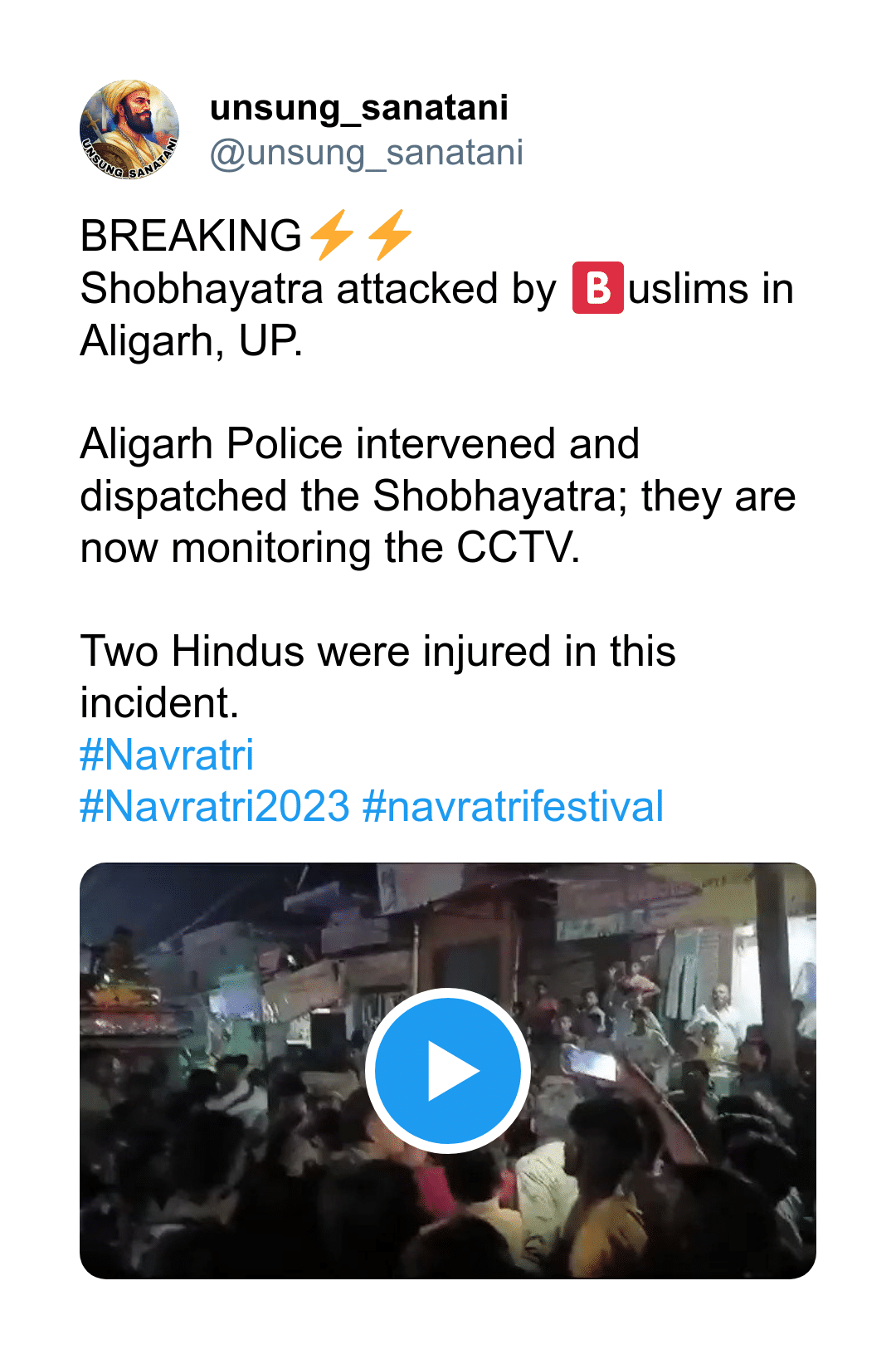 Muslims Attack and Pelt stones on Hindu Shobhayatra.